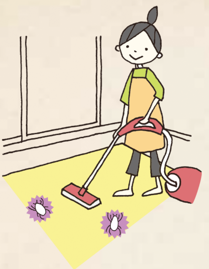 パイル地の目に逆らうように、じゅうたんを軽く叩きつけながらそうじ機をかけると、ダニや糞が浮上してよく取れる。