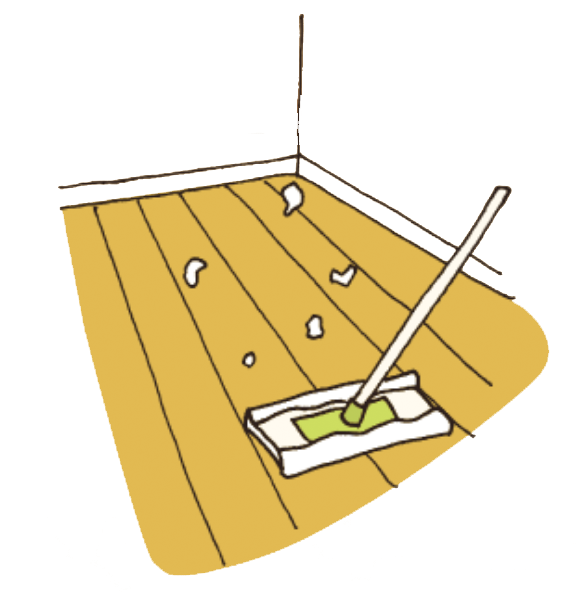 そうじ機でゴミを吸い取り、固く絞ったぞうきんで水拭きをして予防。