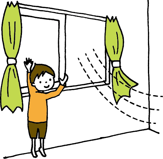 こまめに開閉し、空気のよどみをなくす。雨戸や複層ガラスをつけ、ガラス内面の温度低下を防ぐ。水滴はこまめに拭き取る。