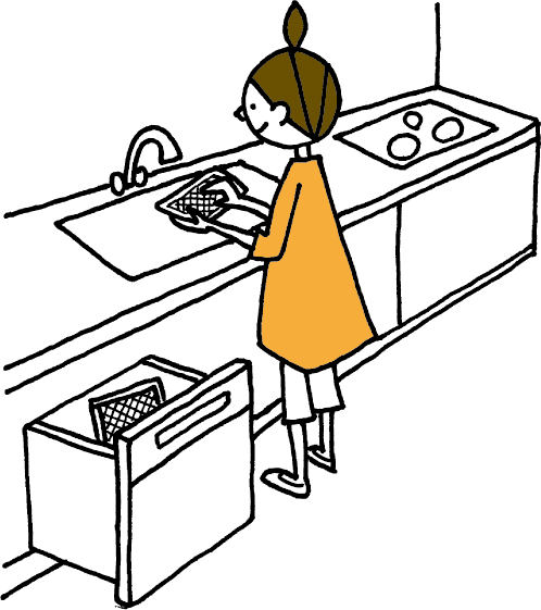 水蒸気が広がらないよう、調理時、炊飯時、皿法い時は換気扇を目す。