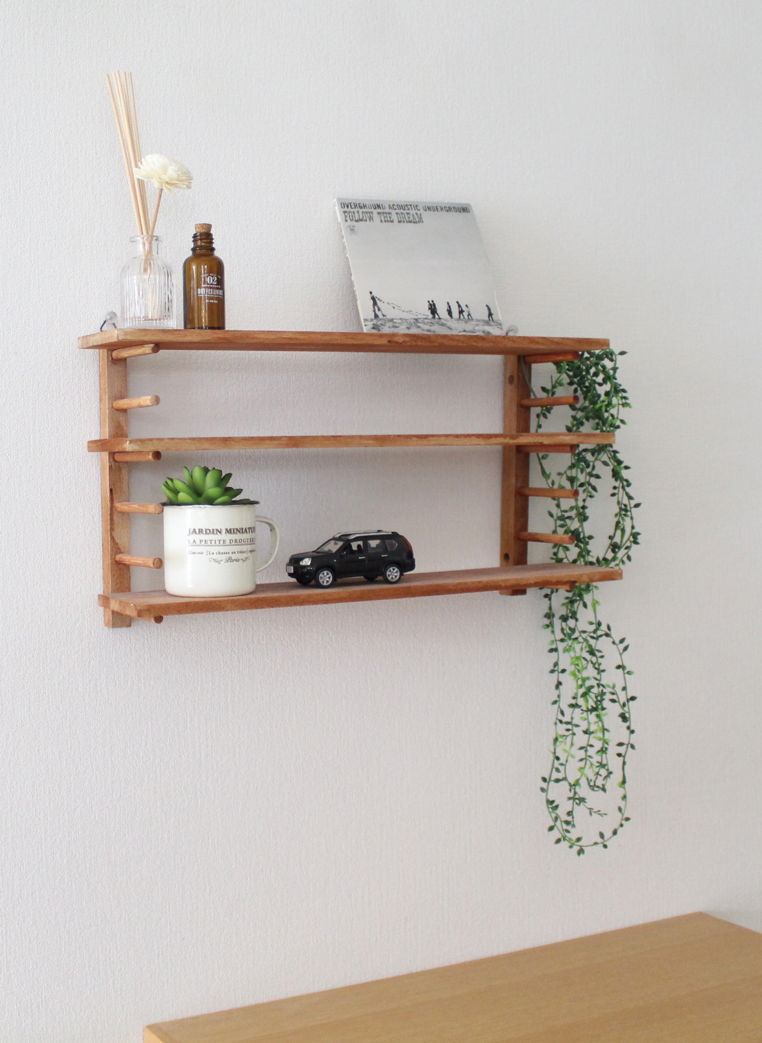 シンプルなデザインの飾り棚は、お気に入りの雑貨が引き立ちます