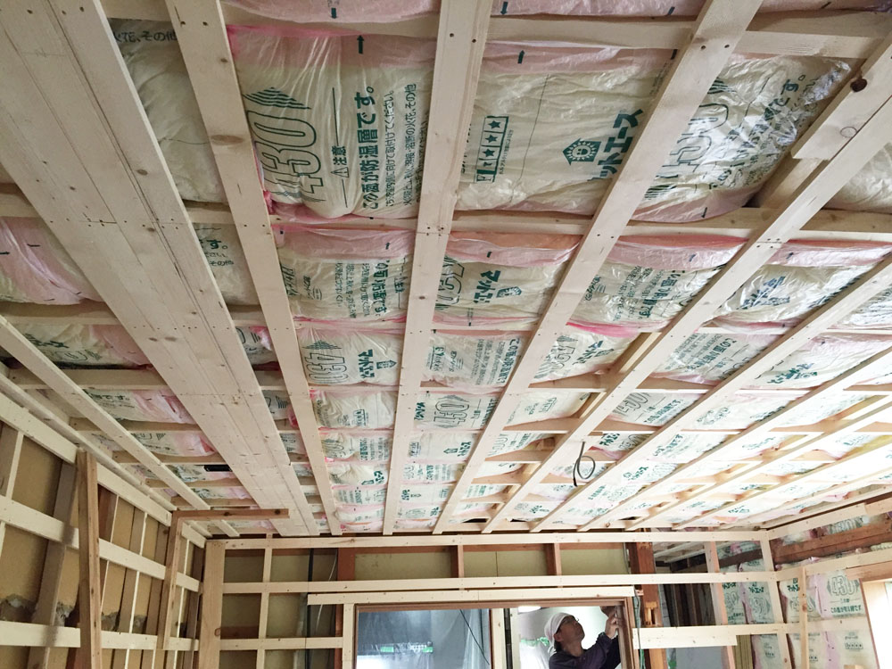 天井裏に断熱材を敷き詰めることであたたかい空気が逃げにくくなります。