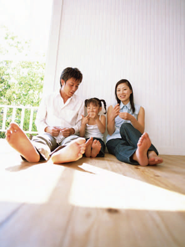 無垢フローリングは保温性や断熱性に優れており、素足で歩くとほんのりあたたかく感じます。 また、乾燥すると水分を外部に発散し、湿度が高いと水分を吸収する特性をもち、夏はべたつかず、冬は静電気を抑えてくれます。