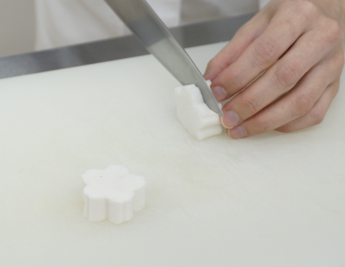 卵は溶きほぐして砂糖と塩で味付けし、焼き色がつかないよう手早く薄焼き卵をつくる。火加減は中火で。 せん切りして錦糸卵にする。