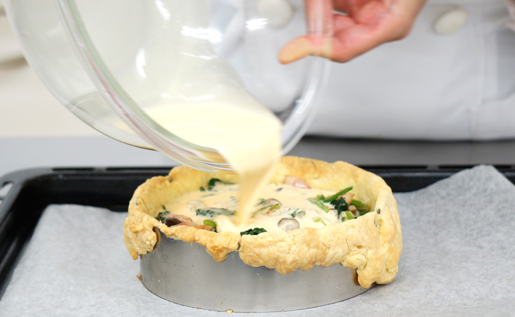 冬野菜には抗酸化作用の高いビタミンCやBカロテンが多く含まれます。これらの栄養素は体の免疫力を高め、風邪予防や成人病予防に役立ちます。今回のキッシュには、冬に旬を迎えるほうれん草とねぎをたっぷり使いました。ほうれん草やねぎにはBカロテンのほか、カルシウム、鉄分や葉酸、ビタミンKなどが含まれます。これらの栄養素は血液の生成や骨の形成に関与するため、健康な体づくりには不可欠です。