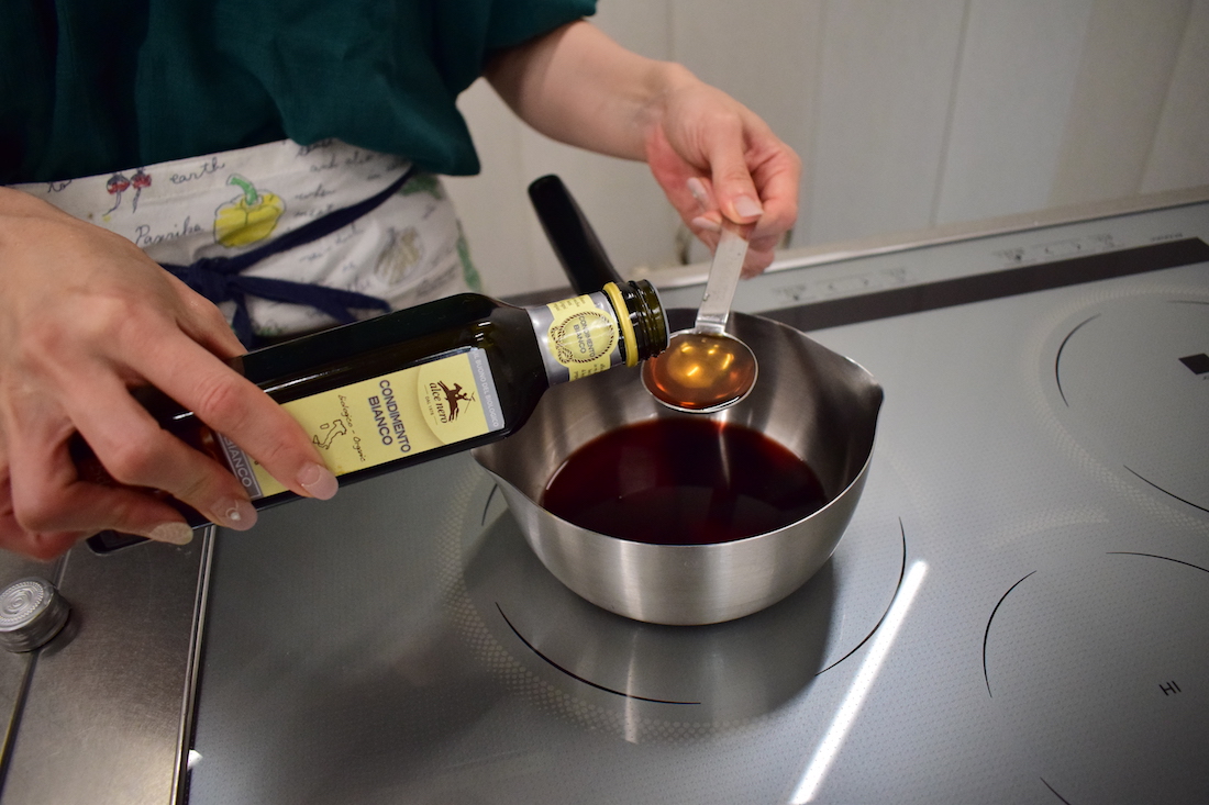 ローストビーフソースの材料、すべてを小鍋に入れて加熱する。