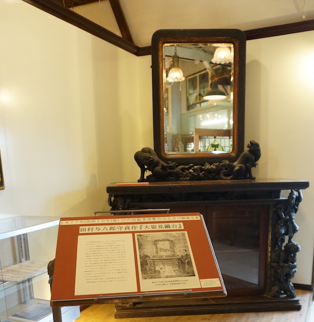 イギリスで井波彫刻の逸品、田村与八郎守貞作の「大姿見台」と出合い、買い付けて開国。素青らしい作品なので、一見の価値アリです