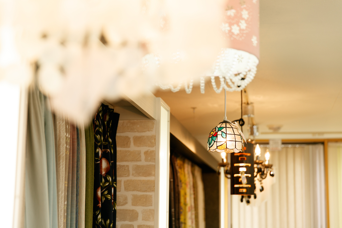 かあてんやでは、実際に見て、触って、カーテン生地を選ぶことができます。ブラインドなどカーテン以外の製品も豊富にあります