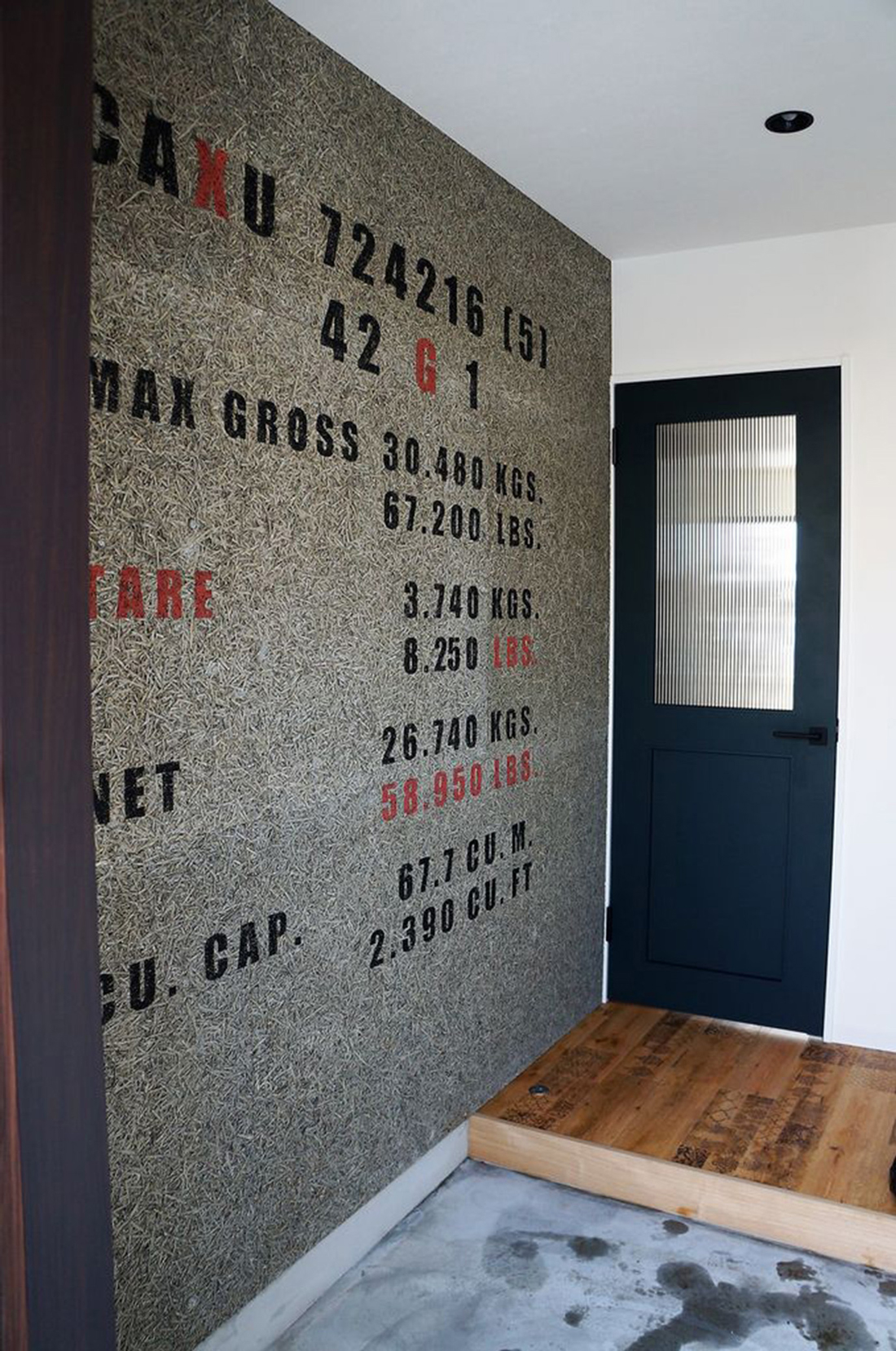 体育館や倉庫の天井裏にも使われることが多い木毛セメント板にペイントして男前な雰囲気に。