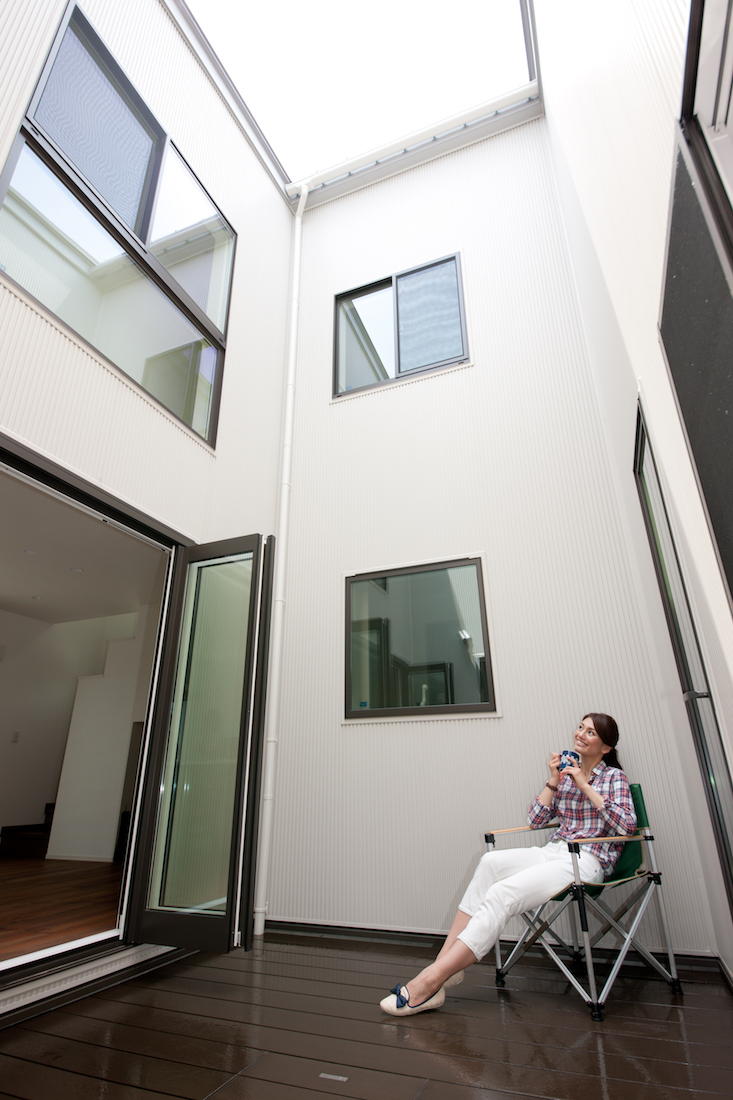 お気に入りは、光庭。光がたっぷり入り、風が通り抜けていくので、夕涼みにも良さそうですね。室内の様子が見渡せるのも安心感があります