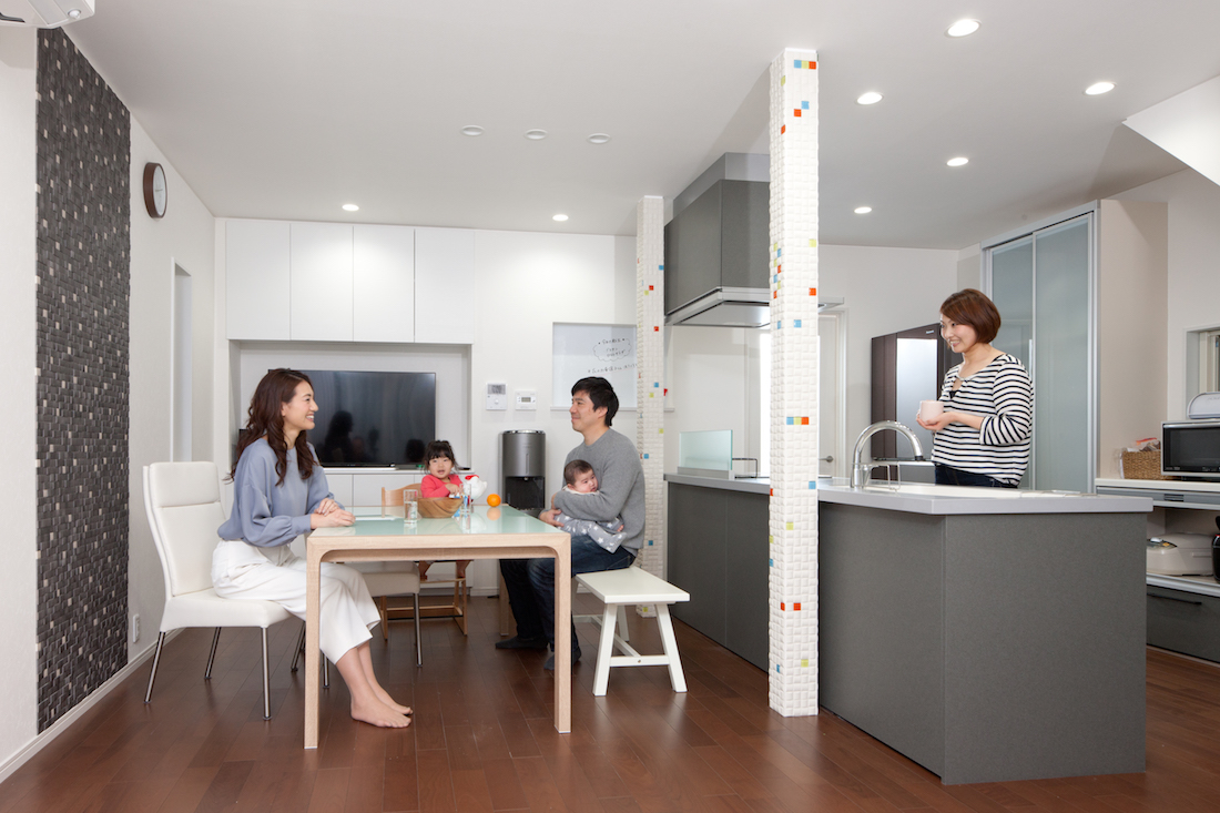 家族の距離が縮まる住まいにアイランドキッチンを対面式にレイアウトしたことで、娘が料理を手伝ってくれるようになりました。食後もみんなでゆっくり寛いでいます。父と母も「使いやすくなった」と言ってくれています。