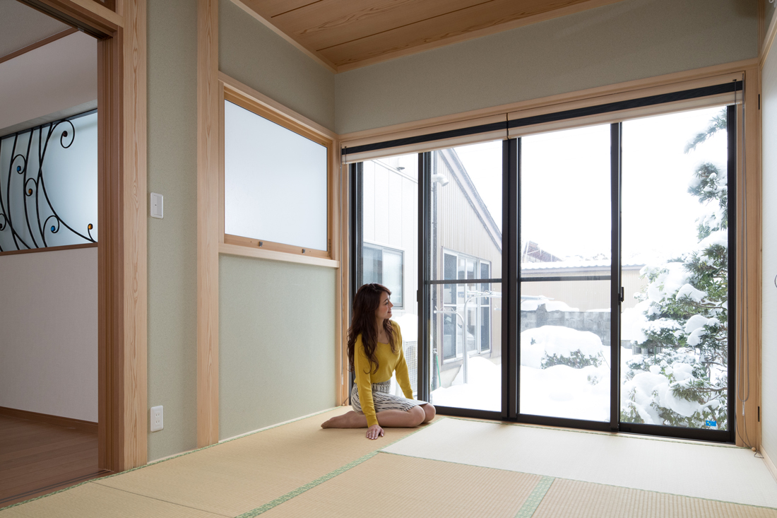既存の床の間を残して全体を一新した和室は、上質なサッシによって暖かい空間を実現。引き戸を開放すれば、LDKと一体感のある空間になります