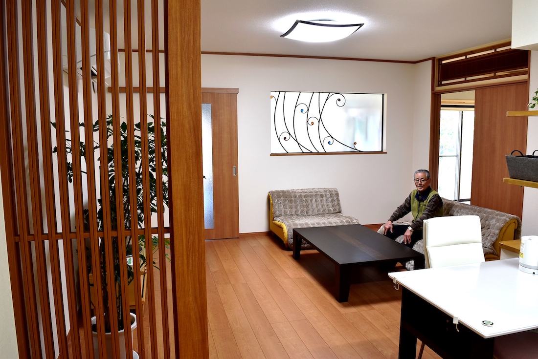 築50年の長屋にお住まいのI様ご家族。今回で3回目となるリフォームは、寒さを解消することが最大の目的でした。「家中に断熱材を入れたい」と考えていたご主人の強い思いに応えるため、ほぼ全面を解体して断熱材を入れ、古いサッシを高断熱サッシに取り替え、既存サッシを利用した窓には内窓を取り付けるなどして、家全体の断熱性能を高めています。「LDKもお風呂も2階の部屋も、どこにいても暖かいです」と、想いをかなえたご主人は満足そうな表情を浮かべます。
