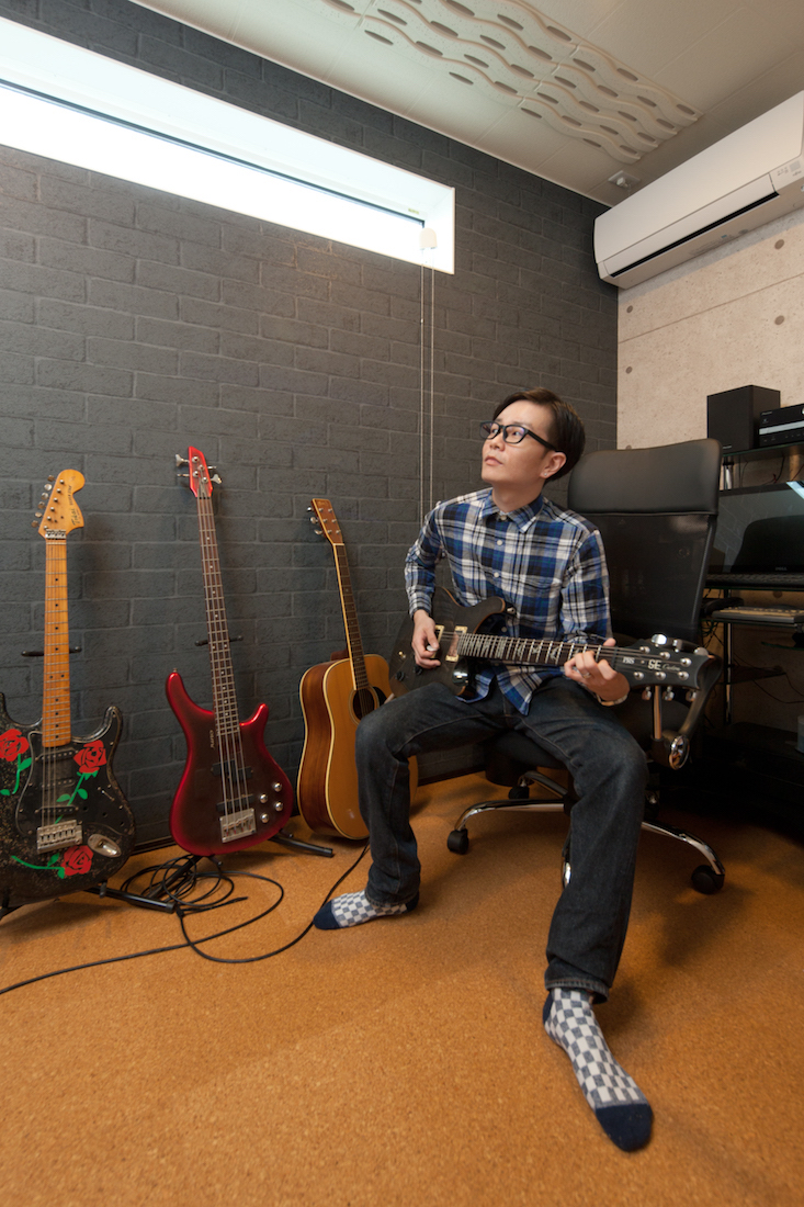ご主人の趣味、ギター演奏を思う存分楽しめる防音室。断熱材と、吸音材を使用した天井のおかげでまったく音が漏れません