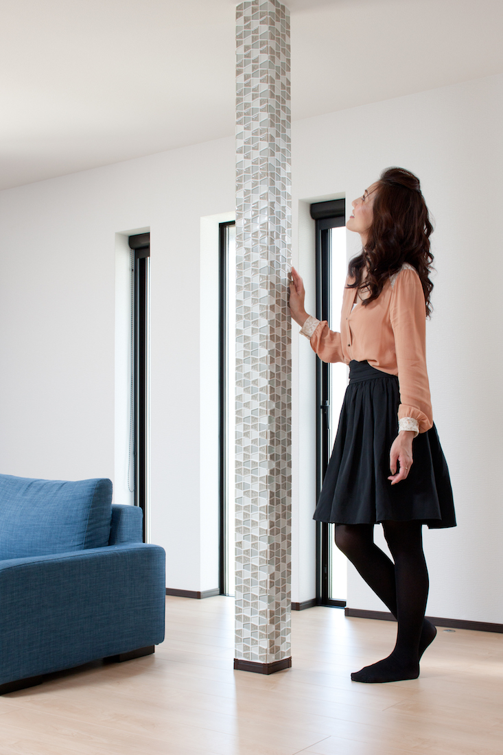 構造上必要で、抜くことができなかった柱には、空間のアクセントとしてタイルを貼っています