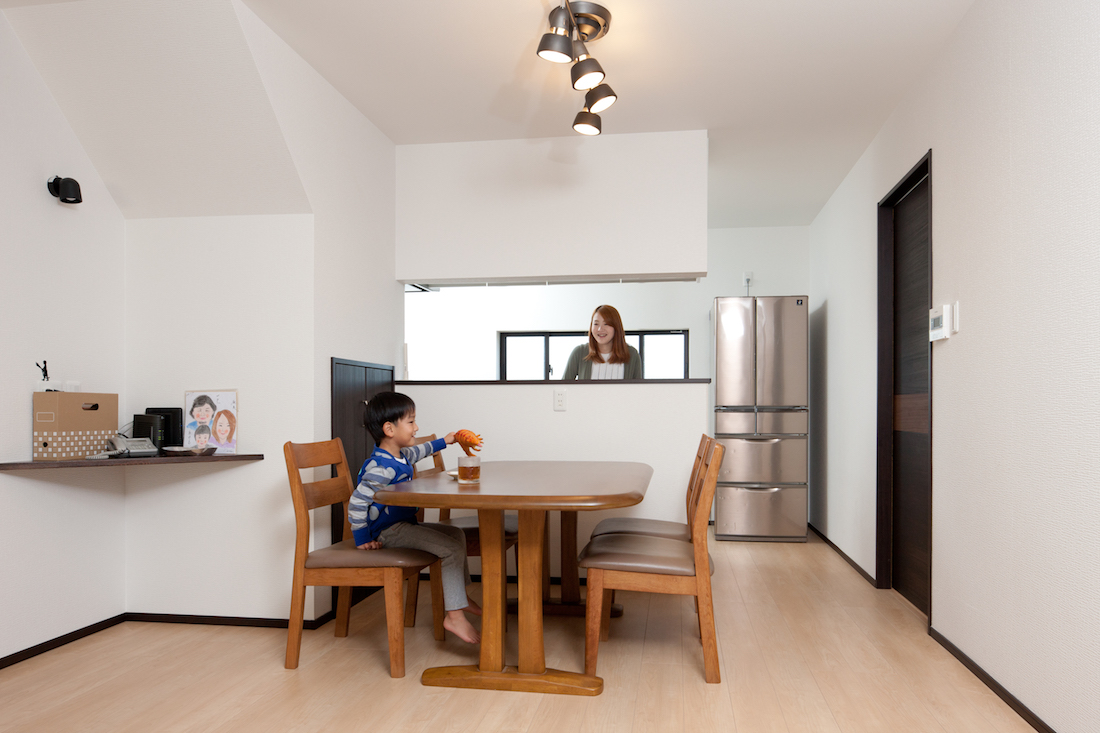 家族との一体感と動きやすい家事動線を意識して子育て中のお客様のご要望には「家族全員が見渡せるリビングが欲しい」と話してくださる方が多いです。小さなお子様がいらっしゃると目が離せないことも多いですよね。私たちは、今回紹介したように家族との一体感が保てる対面式キッチンのLDKをご提案するケースがありますよ。