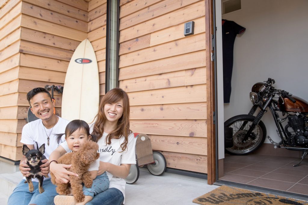 バイクや車、キャンプなどアウトドアが趣味のM様ご夫妻。バイクの置ける玄関、勝手口からキャンプ用品を出し入れできる間取りなど、趣味を満喫できる家づくりとなりました。これからご家族でアクティブに過ごす時間がますます増えていきそうですね。