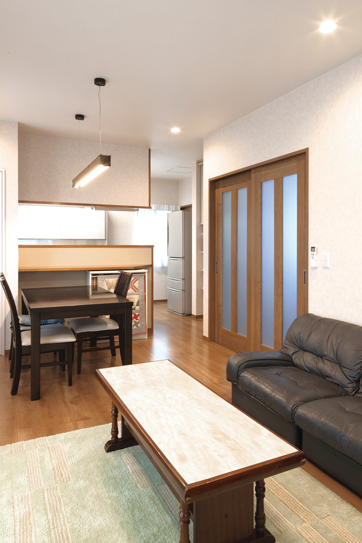 ガラリと変わったのがLDKです。以前は日当たりの良い南東に四畳半の和室と縁側がありましたが、あまり使われていなかったため、和室をなくし、リビングを南東に移動。玄関からの見た目も良くなり、お客様にも好評だそう。