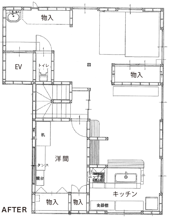 構造上どうしても抜けない柱があったため、通路の幅や収納の幅、家具のサイズなどを全て測り、絶対に通れるサイズを確保するため間取りは熟慮しました