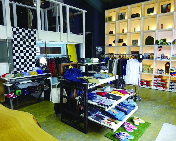 県内では数少ないスケートボードの室内パークを併設したセレクトショップ。初心者からベテランまで幅広い層のスケーターの練習の場になっており、放課後は小学生の男の子や女の子も通うフランクな雰囲気です。