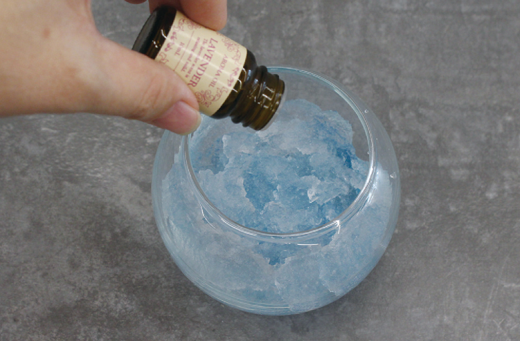 保冷剤とアロマオイルを混ぜます。