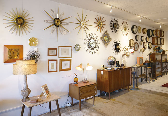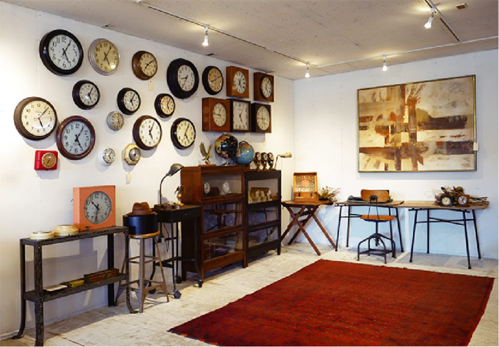 何から手をつけていいか分からないという方には、時計をおすすめしています。当店では、アメリカでも人気の高い、太陽を象ったサンバーストクロックや、スクールクロックを中心に、アンティークのウォールクロックを取り揃えています。存在感のあるアンティークは、ひとつ飾るだけでもお部屋に趣が出ます。実用性があるから飾るハードルも低いですし、長くお使いになれます。もちろんアンティークに限らず、自分が好きだと思うことが一番大切です。