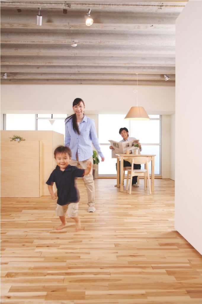 温度ムラが少ないので、広いリビングで家族が思い思いの場所にいてもあたたかく過ごせます。