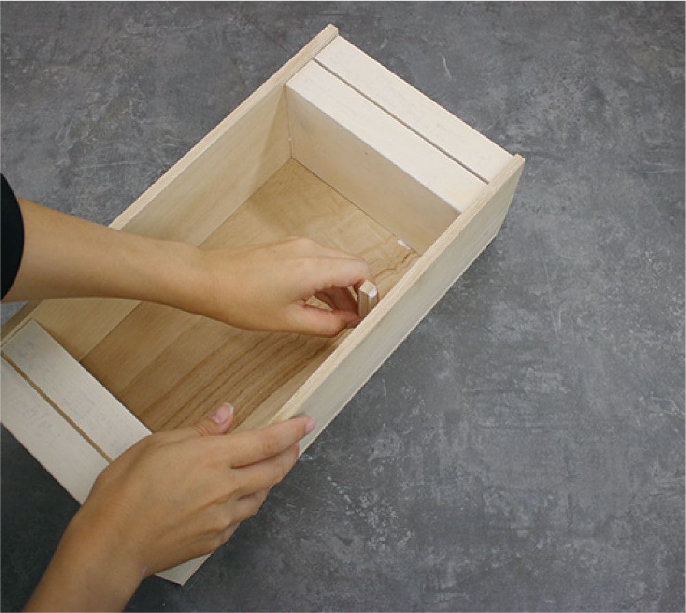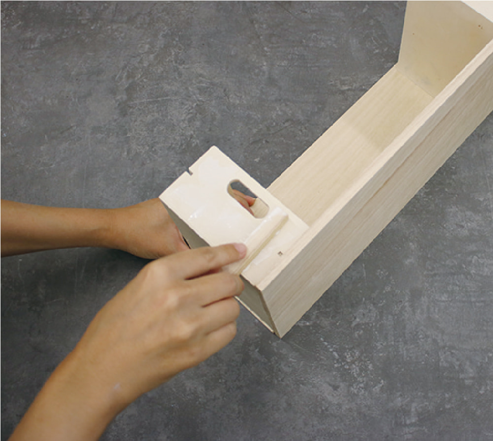 木工用ボンドが乾いたら、こびょうやミニビスで固定します。