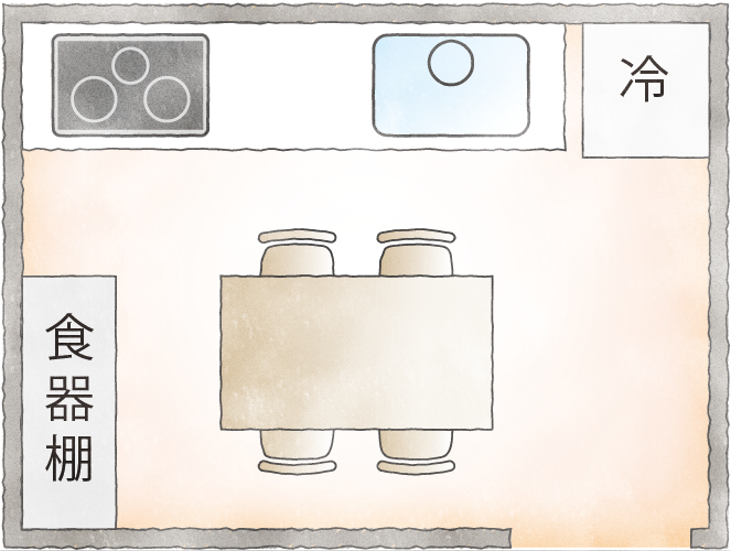 キッチンとダイニングテーブルの背面のほとんどを収納スペースにすることができる点は、対面並列式の最大のメリットと言えるでしょう。また、キッチンとダイニングの行き来が楽になり、配膳が横に流す動作でより簡単になることもメリットの一つです。し