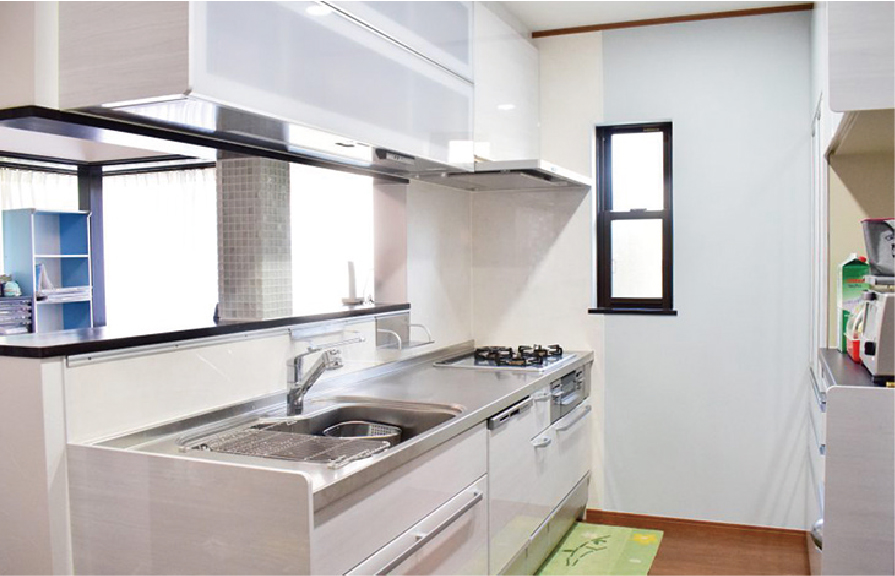 対面式キッチンのメリットはその開放感。料理をしながらテレビを見たり、子どもの様子も確認したりできるため、子育て世代には特に人気です。