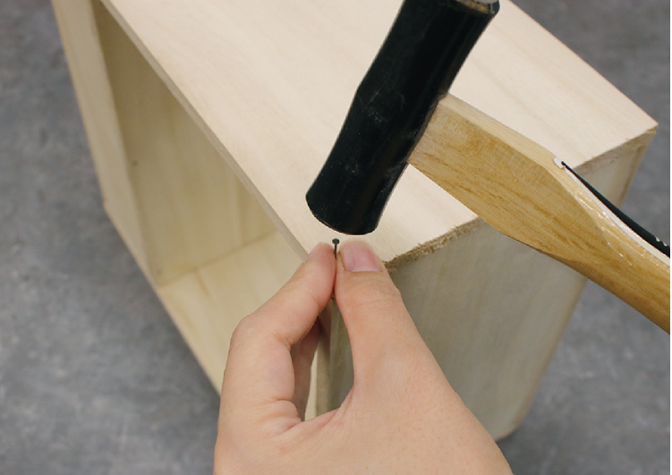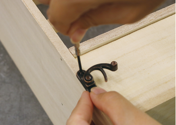 木工用ボンドが乾いたら、こびょうやミニビスで固定します。