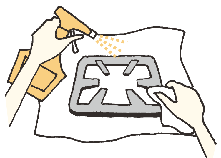 | 普段の手入れで見落とした汚れをお湯や重曹でしっかり拭き取る。グリルはお湯などで汚れを緩ませて早めに洗う。 | |