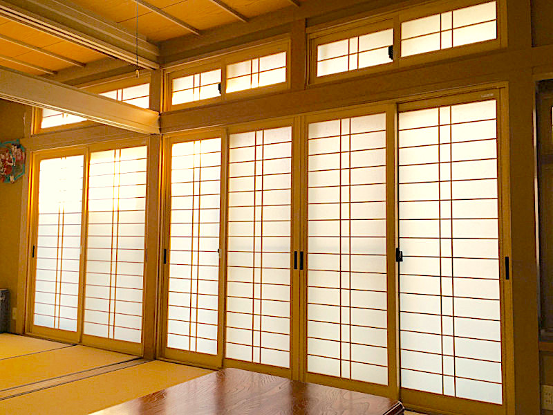 既存の障子を内窓にリフォーム。障子紙に見えるところは和紙調のガラスです。障子の張り替えの手間もなくなります