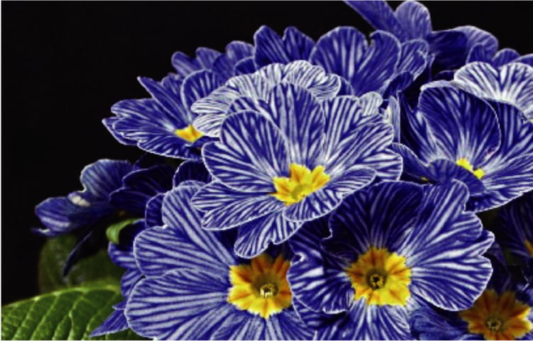 プリムラの品種は世界中に500種以上ありますが、プリムラ・ジュリアンのゼブラブルーはその名の通り青いゼブラ柄が特徴です。近くで見るとゼブラ柄、離れて見るとデニム地のようにも見えるユニークな品種です。