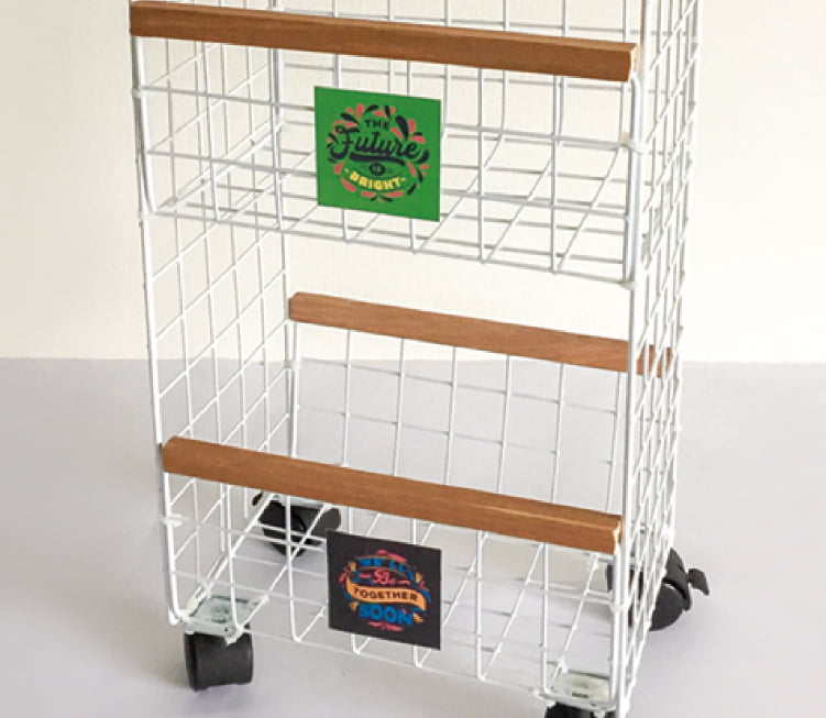 ※ラベルはお好きなデザイン、カラーでOK!今回のようにラックごとにカラーを変えても、また同じカラーで揃えてみるのも素敵!