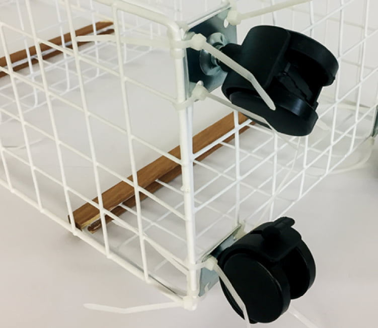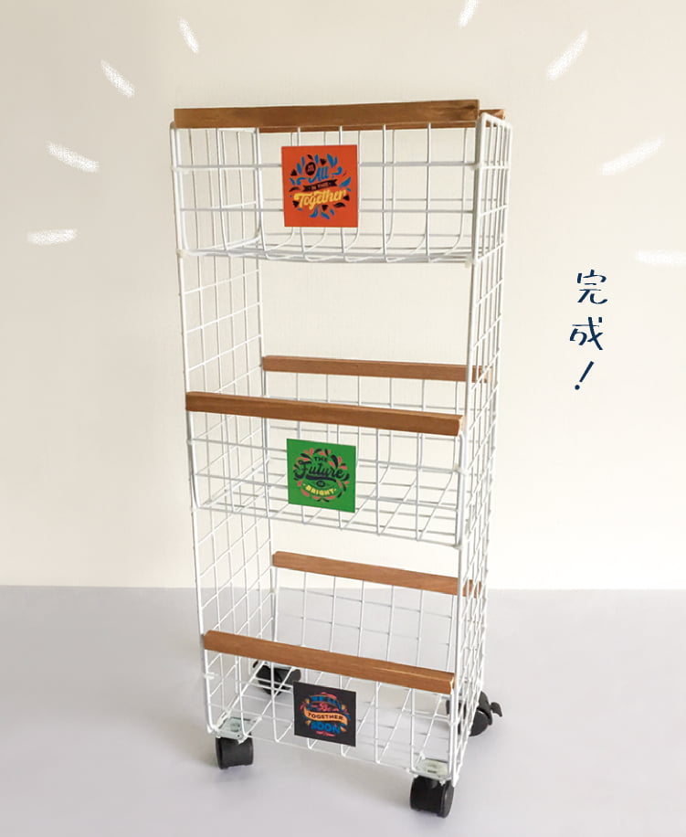 最下部のラックとキャスターを固定し、不要なバンド部分をカットしたら完成!!
