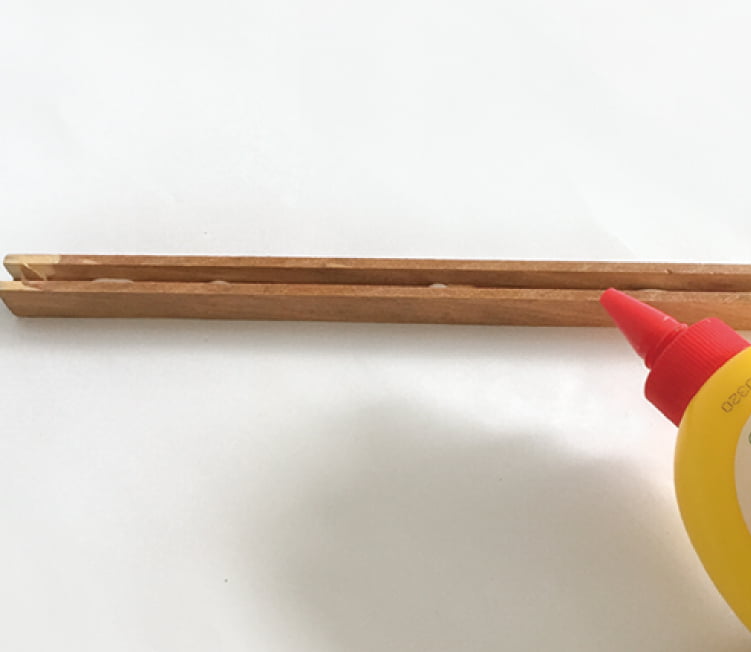 溝のある方を上にして、溝の中に木工用ボンドを流し込みます