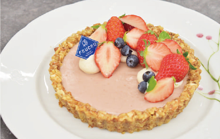 土台にはナッツを使用したタルト。フィリングは体に優しい甘酒といちごを使ったプリンで召し上がれ。
