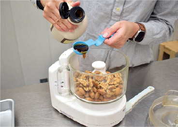 フードプロセッサーにクラストの材料を全て入れ、攪拌する