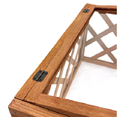 3に枠内より少し大きめにカットしたプラバンをはめ込み、蝶番と取っ手を取り付けます。