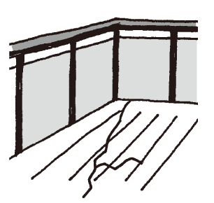 床面に特殊塗料またはベランダ用塗料を塗る。大きなひびは当社まで相談を。