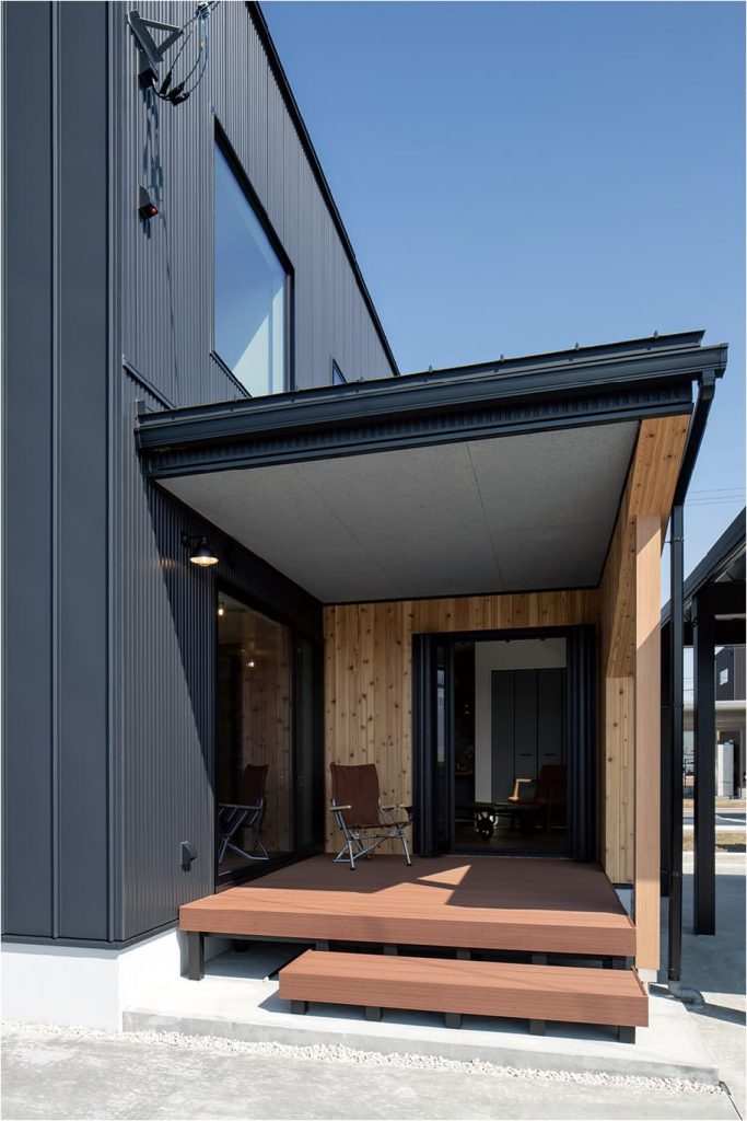 屋根付きのウッドデッキで、食事をしたり趣味を楽しんだり。天候を気にせずアウトドアリビングを楽しめます
