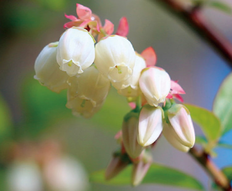 | ブルーベリーはツツジ科スノキ属です。ベル状の白い花を咲かせます。 | |