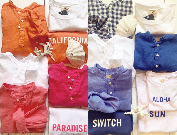 レディース、ユニセックスを中心に、大人のスタイリングを引き立てるラインナップ。家族で選べるウエア展開や、質の良い雑貨の品揃えを見るのも楽しい