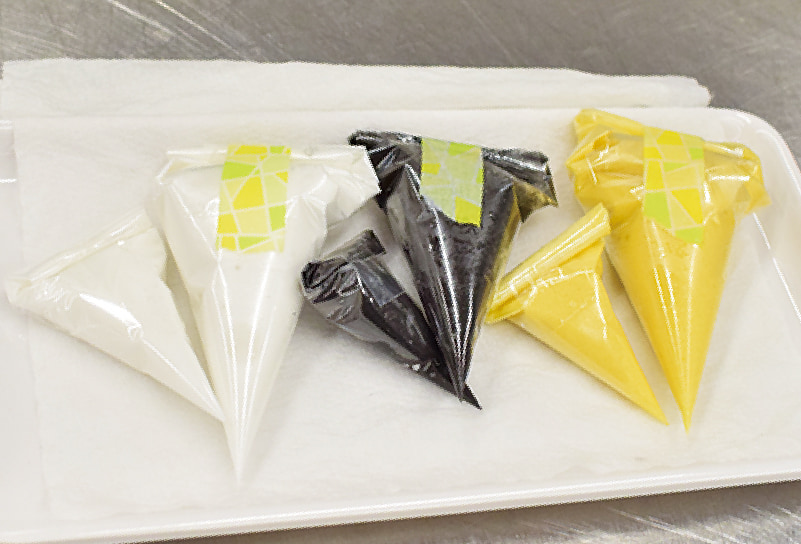 また、同じ色でも固めと柔らかめを使い分けるアイシング。区別するために、どちらかにマスキングテープを貼るとわかりやすいですよ。