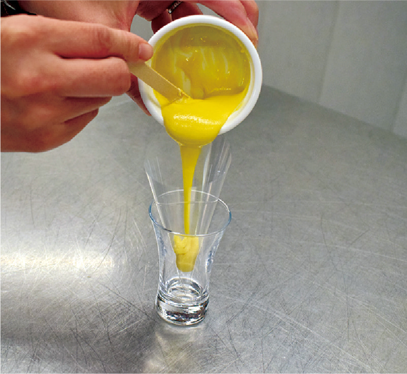 アイシングを必要量取り、水で固さを調整。パウダーを混ぜて着色する