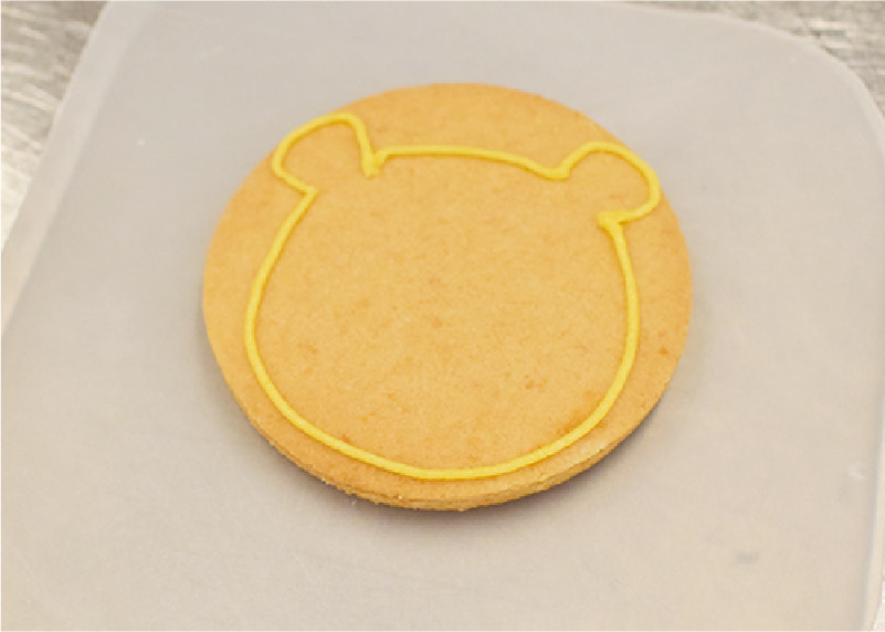 固めのアイシングでクッキーにイラストの輪郭を縁取りする