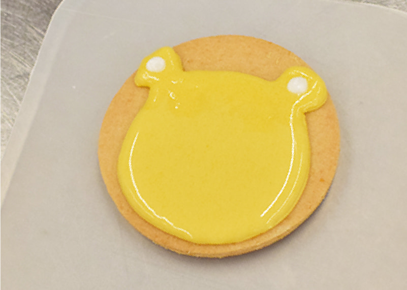 柔らかめのアイシングで内側を塗りつぶす。爪楊枝を使って整える