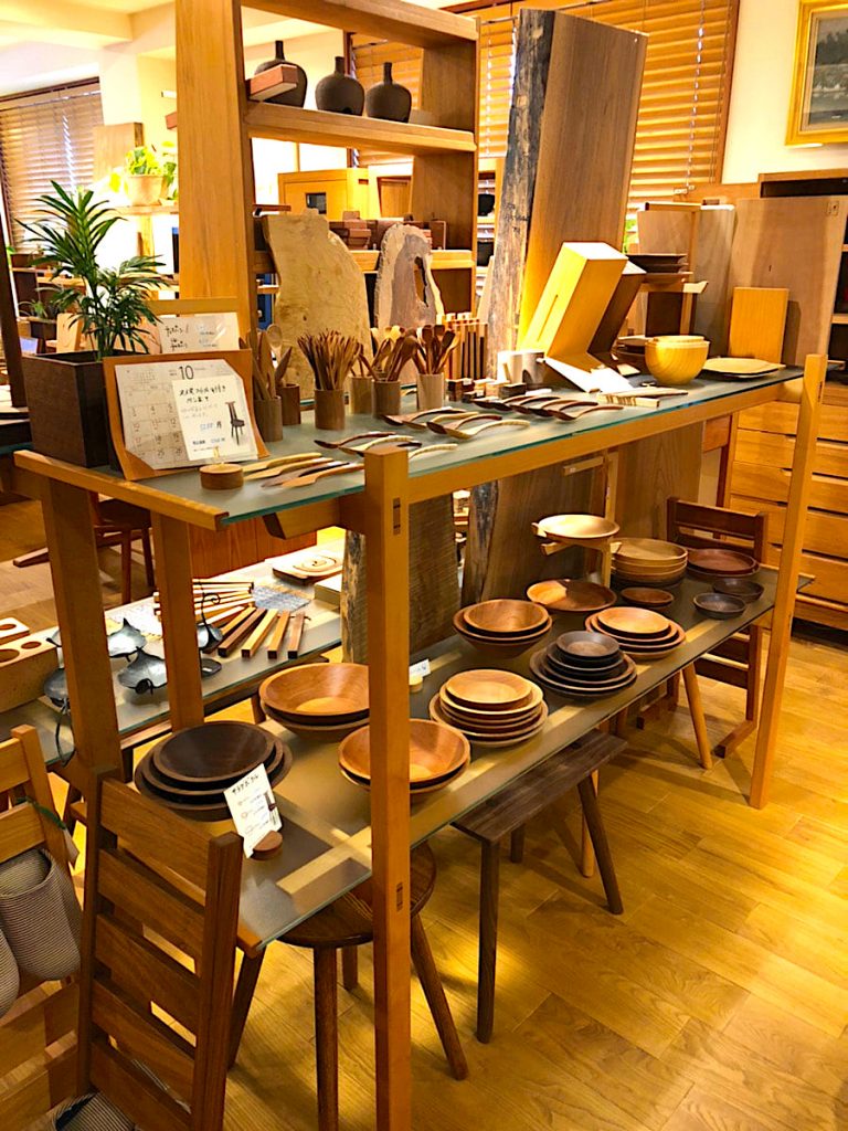 店内には、ベッドやテーブルなどの大型家具だけでなく、ラックや生活雑貨、米ぬかを使った天然木用のメンテナンスオイルなども揃っています。