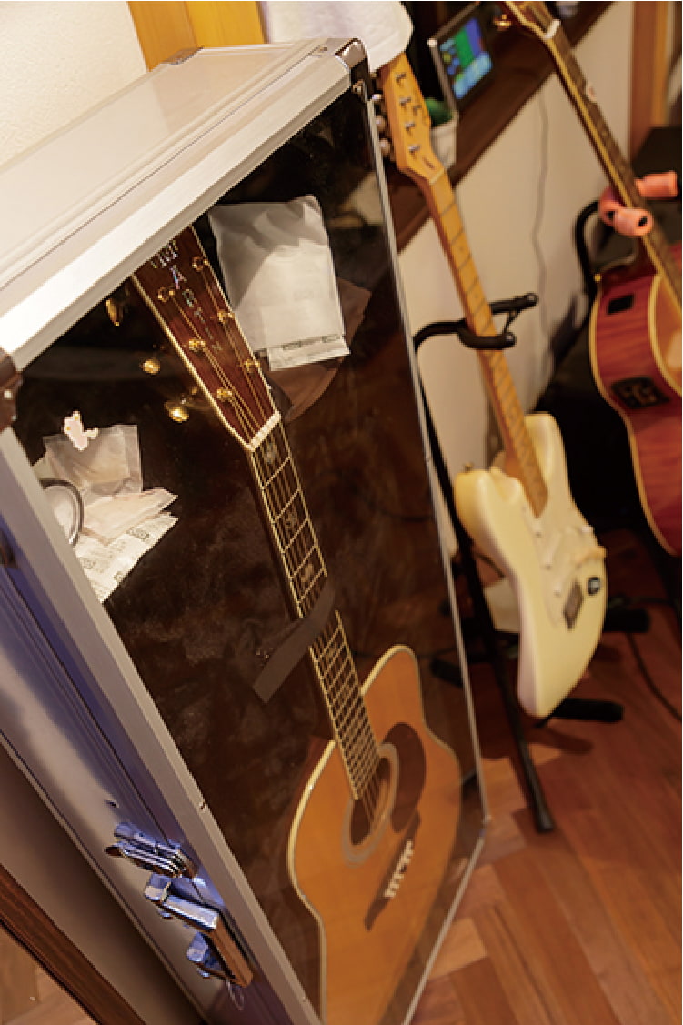憧れの実現はもうひとつ。このリフォームのメインテーマ「音楽を思う存分楽しめる非日常の空間」です。家の奥、離れに続くステップを降りると、そこからは異空間。納屋を丸ごとリノベーションしてつくりあげたシアタールームが出現します。